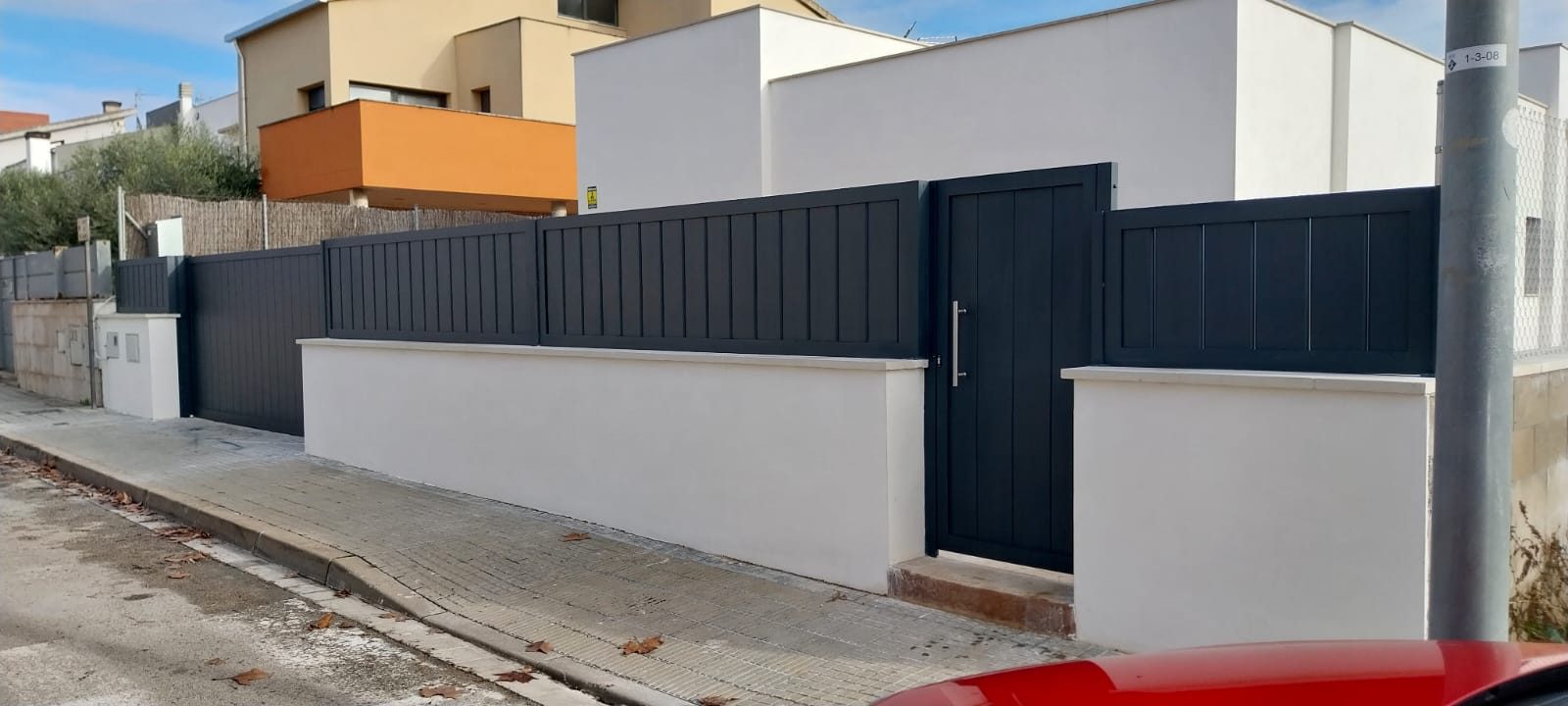 Valla i portes d'alumini electro soldades per tancament de casa unifamiliar.